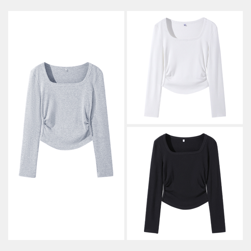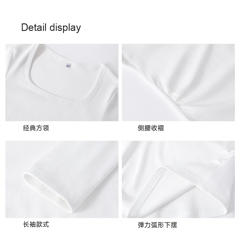 正肩u领内搭打底衫 NOW真维斯白色长袖 修身 女秋季 上衣 t恤2025新款