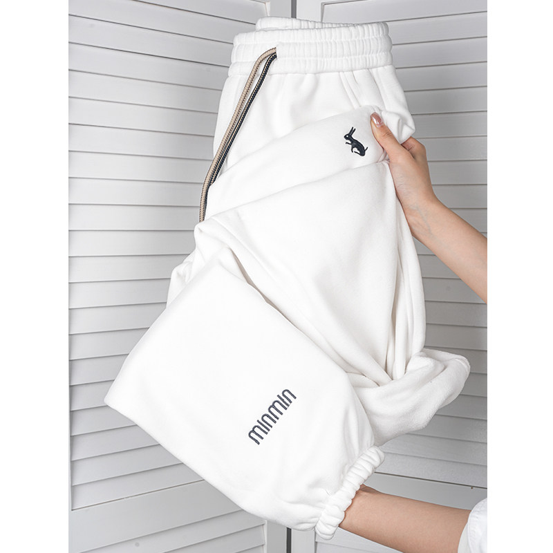女冬季 白色直筒裤 新款 休闲长裤 子 宽松阔腿运动裤 SIINSIIN加绒卫裤