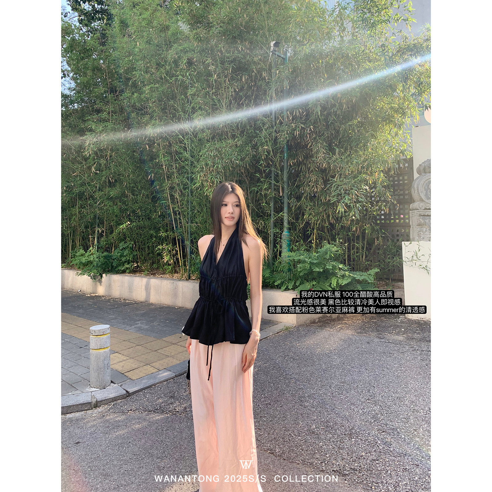 100全醋酸挂脖女夏季 流光美学 吊带上衣 私服DVN WANANTONG