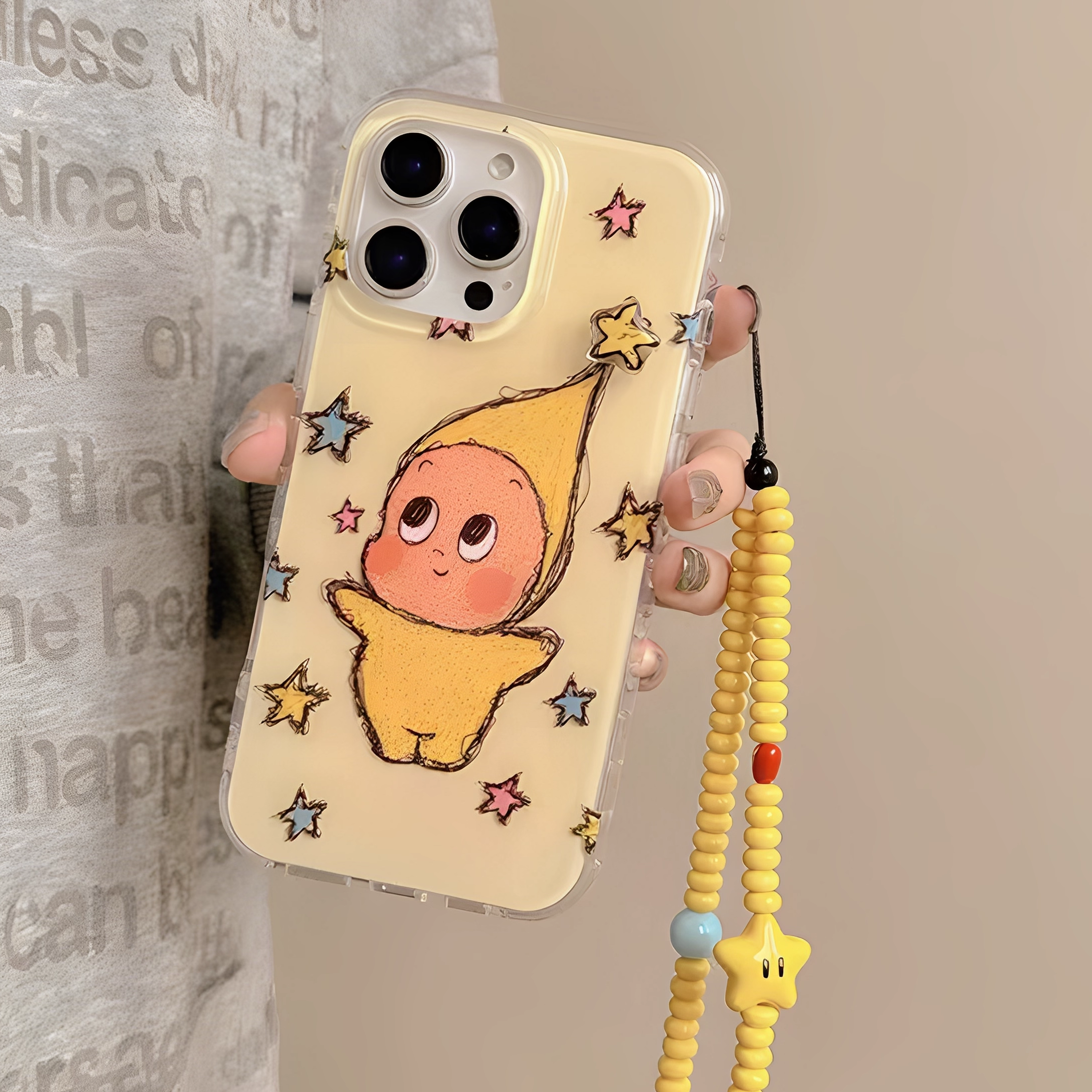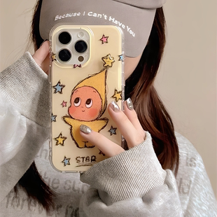 旋转星星小人适用苹果16PROMAX手机壳小米15红米K70新款 华为P80带手链MATE60荣耀400女VIVOS30可爱OPPORENO14