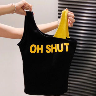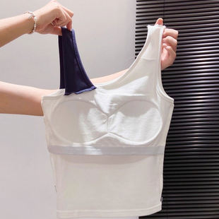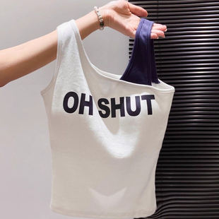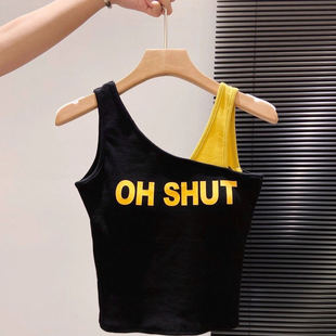 斜肩撞色内搭修身 韩版 新款 吊带背心女外穿带胸垫2025夏季 上衣 时尚