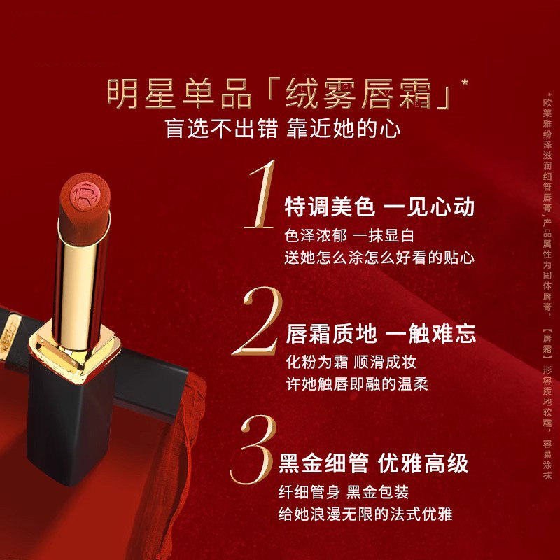 巴黎欧莱雅口红666炸场红绒雾唇霜275保湿 官方旗舰店 唇膏哑光正品