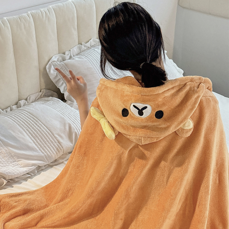 披风毛毯空调毯午睡毯子办公室工位带帽斗篷披肩盖毯浴巾四季 通用