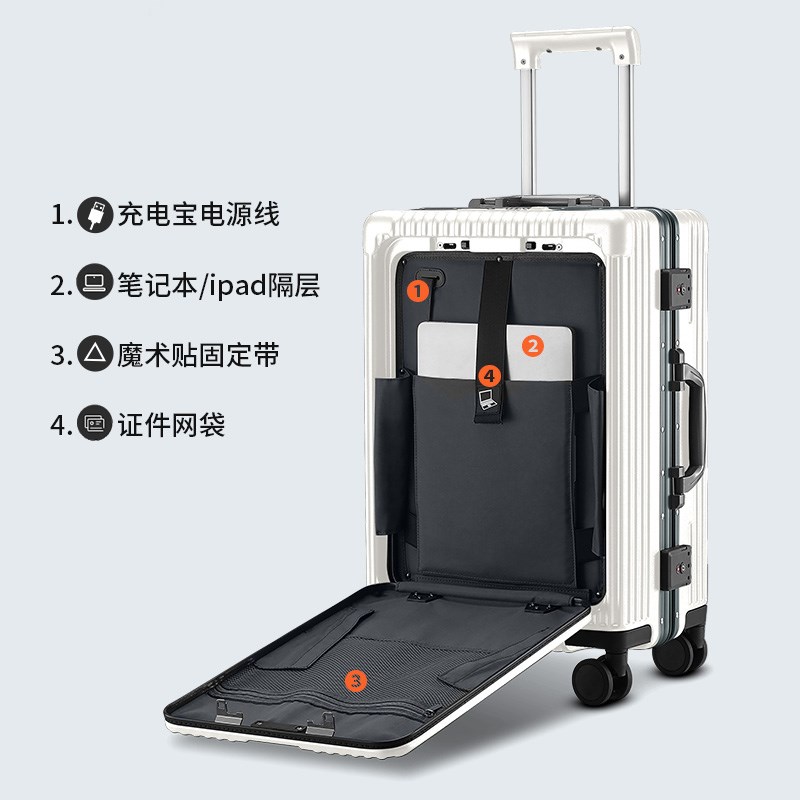 侧开18寸登机行李箱女小型20寸16短途旅行超轻前开口铝框拉杆箱男