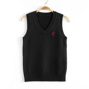 背心日系马甲JK叠穿套头毛衣女无袖 马夹 马甲V领百搭上衣女针织衫