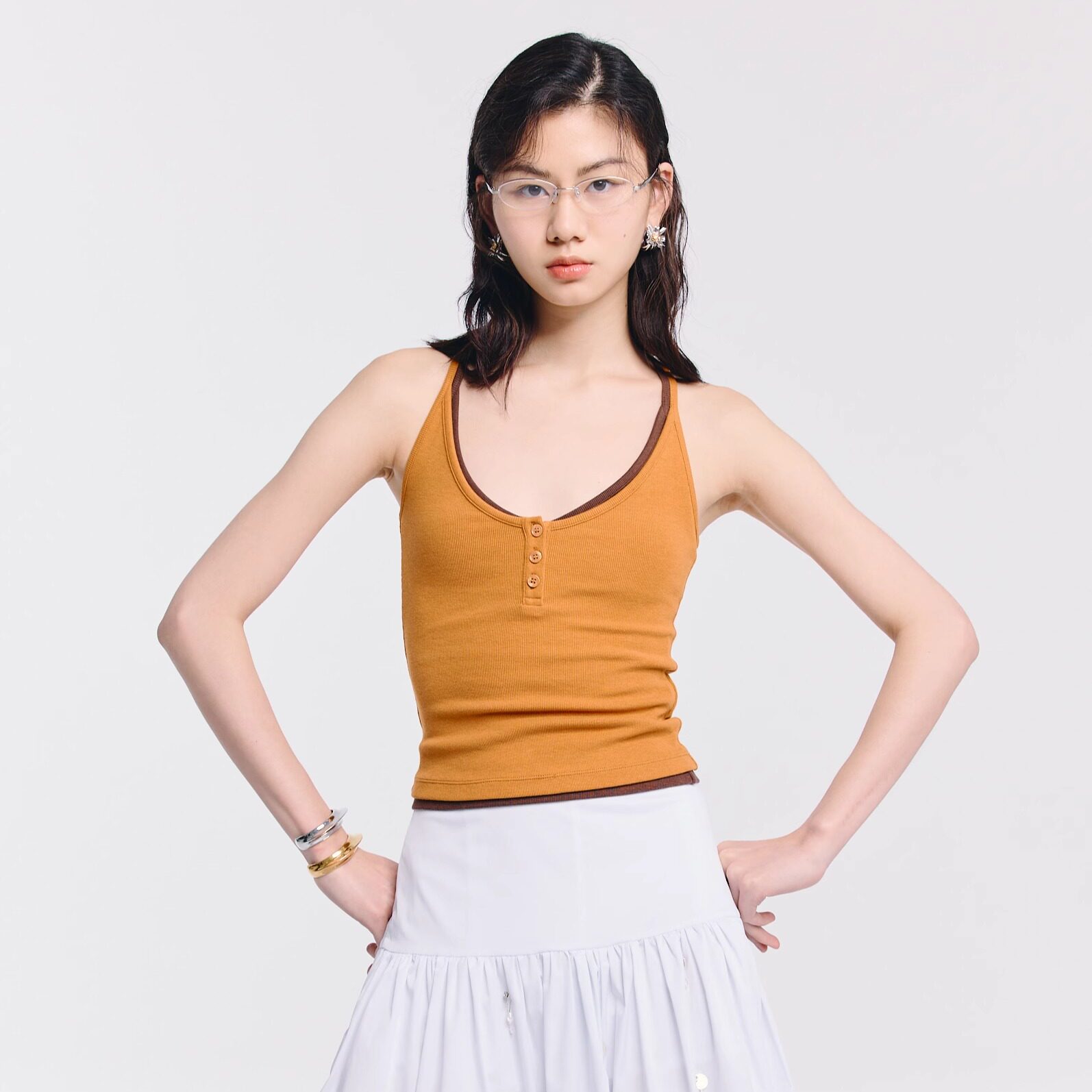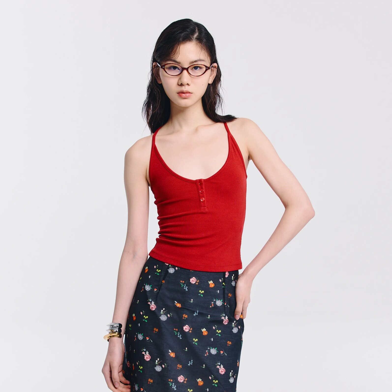 咖色 KotWai 南瓜色 25SS纯色门襟纽扣工字吊带背心女 红色 Ngai