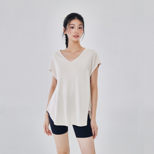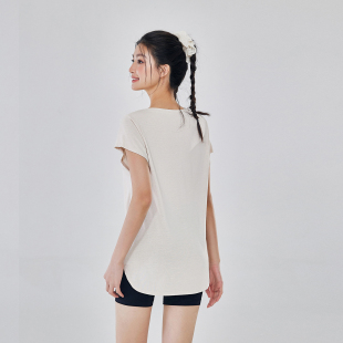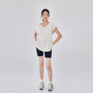 T恤夏薄款 健身短袖 遮臀晨跑锻炼宽松显瘦瑜伽罩衫 运动上衣女长款