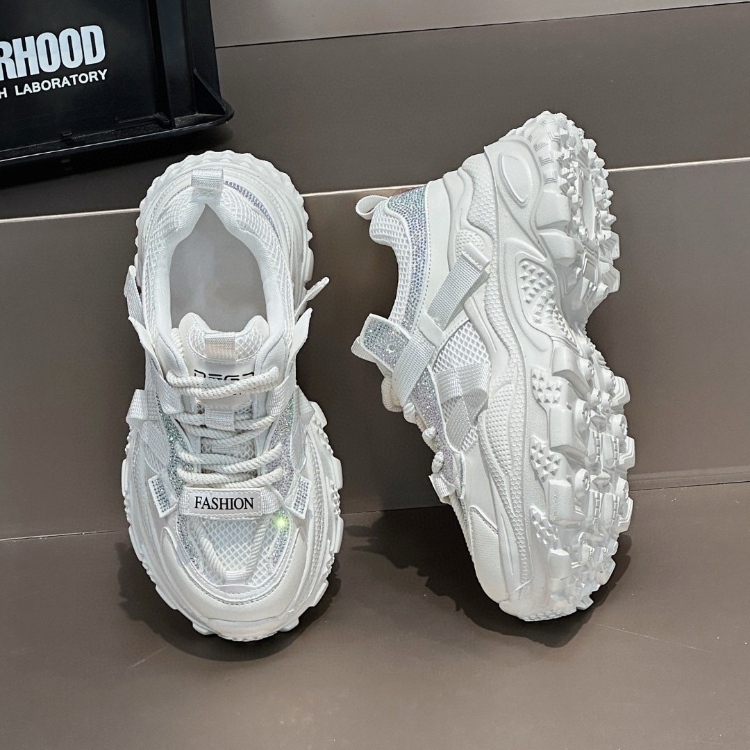 网面鞋 2025新款 镂空真皮休闲运动鞋 女网纱水钻时尚 轻便厚底老爹鞋