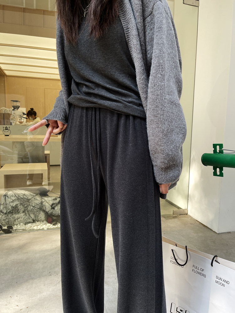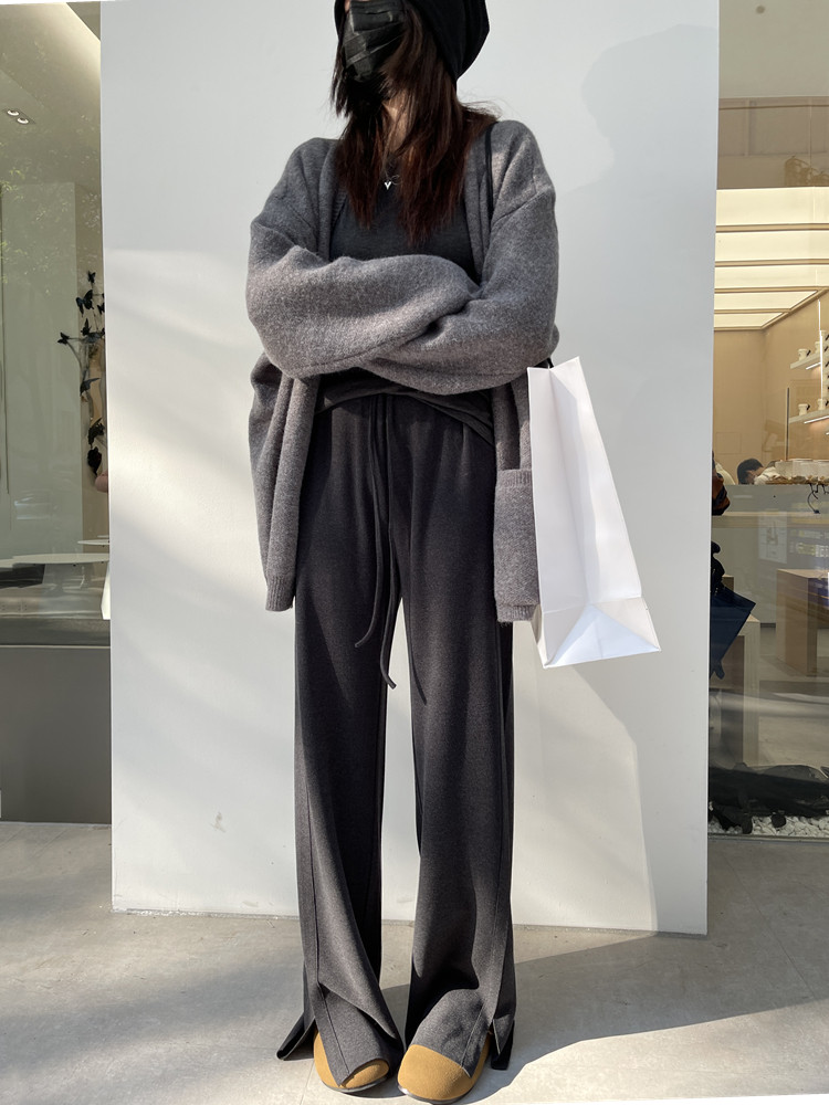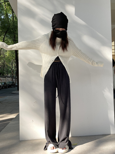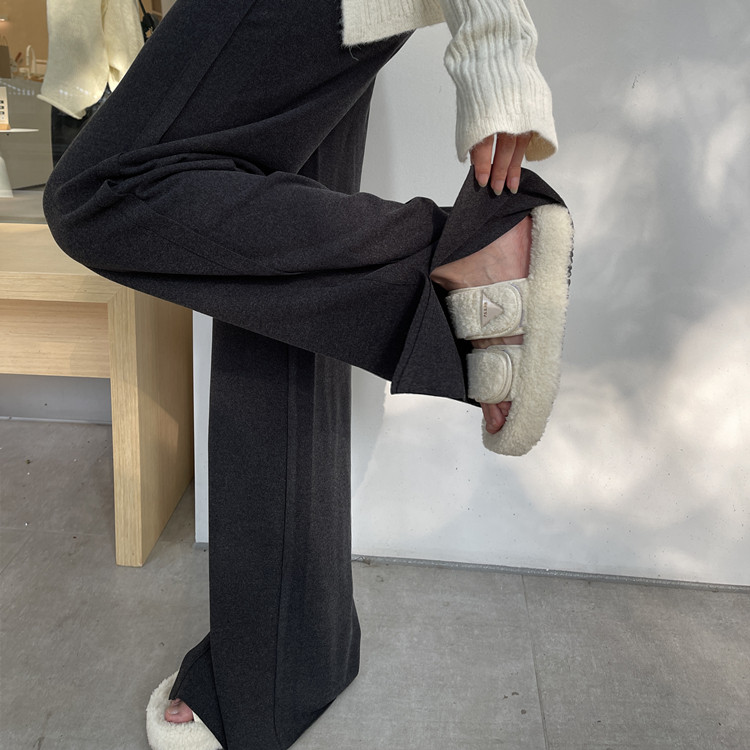 宽松显瘦网红休闲拖地长裤 高腰垂感直筒糯米裤 女秋冬季 德绒阔腿裤