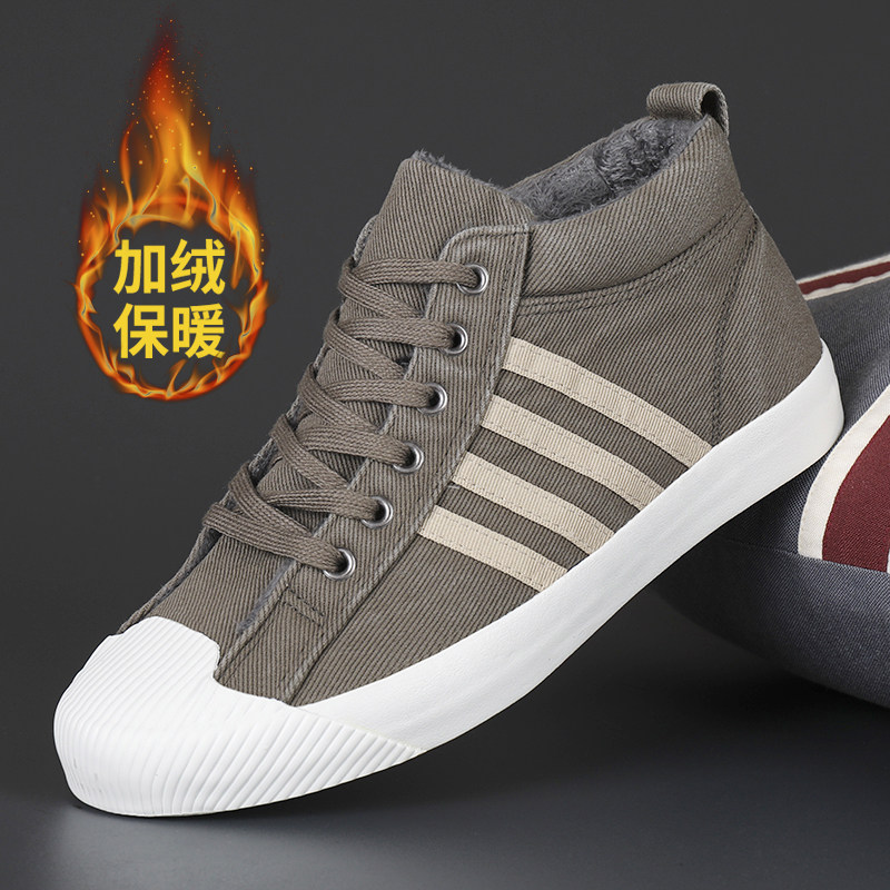 子男运动休闲帆布鞋 环球加绒厚底板鞋 百搭溶解棉鞋 冬季 男2025新款