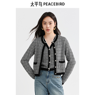 气质外套 秋装 太平鸟亮丝小香风肌理针织线开衫 女背心套装