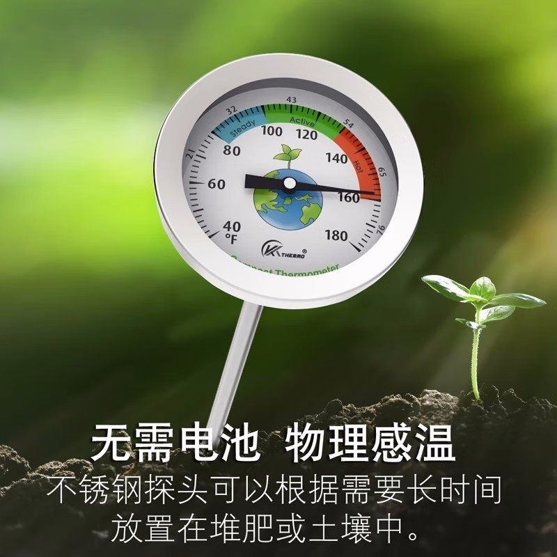 堆肥发酵专用温度计不锈钢50CM超长探针机械表土壤肥料水温测温计