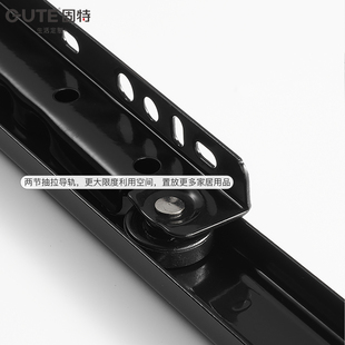 杜邦反弹抽屉轨道按压三节侧装 滑轨通用滑道厨房橱柜承重推拉导轨