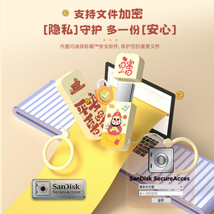 闪迪正品 可爱祝福u盘高速加密学生电脑手机大容量优盘女生送礼