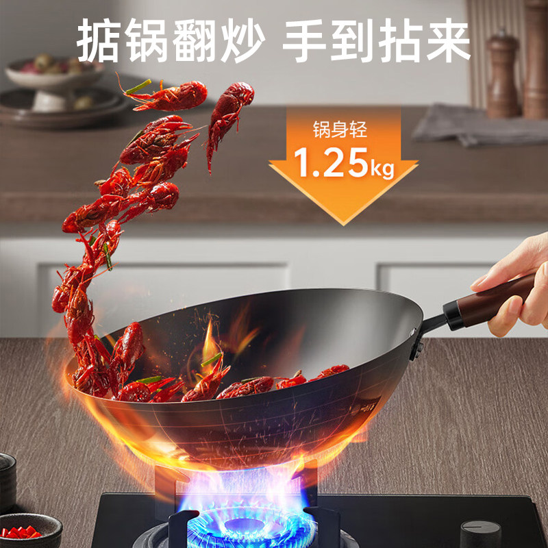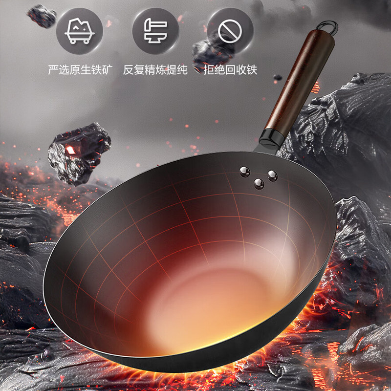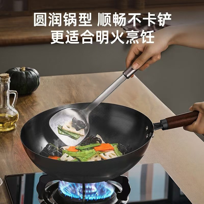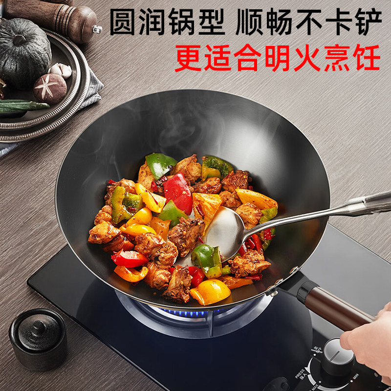 苏泊尔不粘锅铁锅家用无涂层炒菜老式 铸铁锅炒锅精铁不锈燃气专用