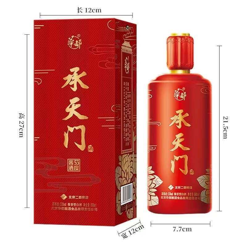 华都承天门庆典红43 北京纯粮酿造 53度500ml酱香型白酒婚宴送礼