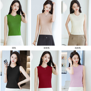 薄款 外穿 修身 无袖 上衣 冰丝针织背心女2026新款 t恤小个子短款 夏季