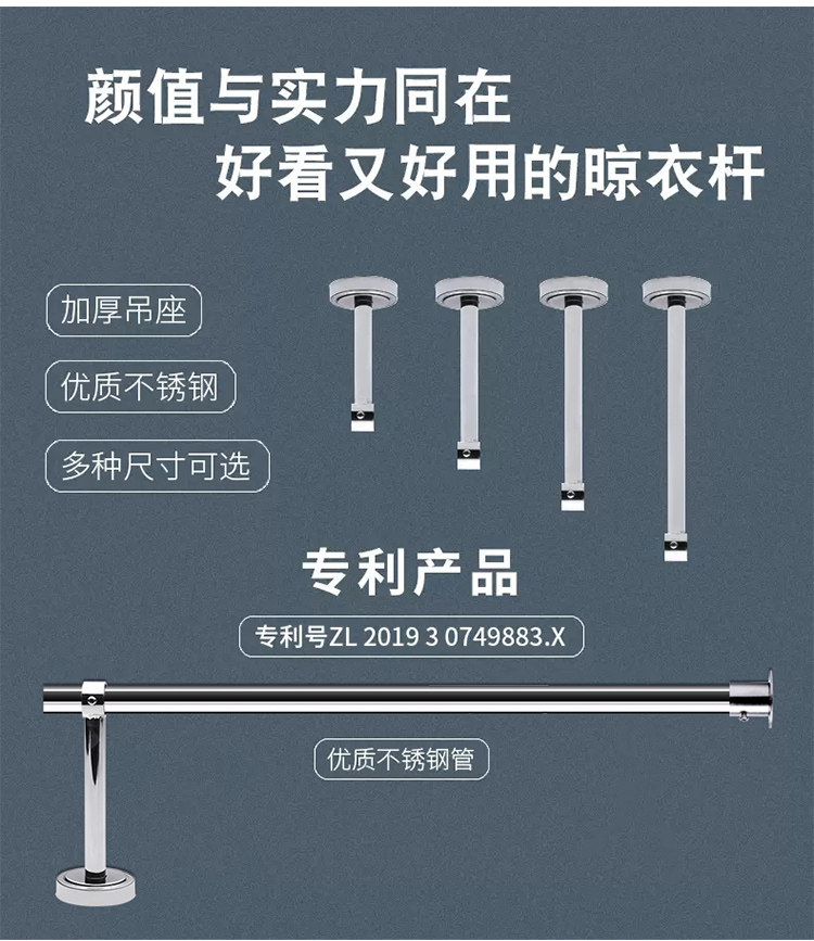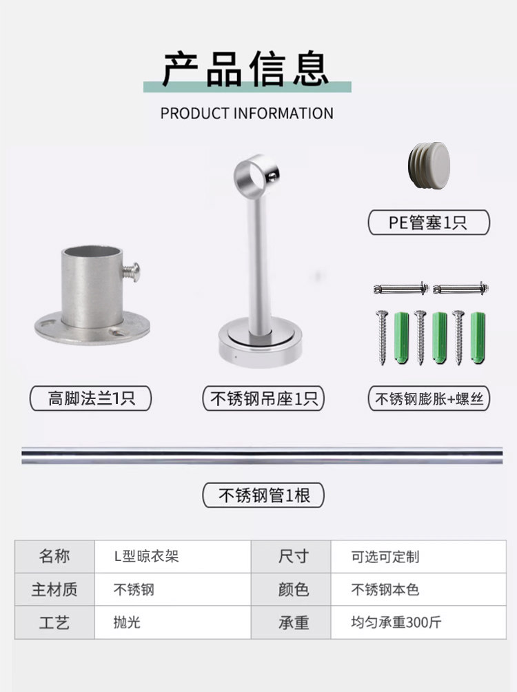 转角凉衣架墙面挂衣杆 晾衣杆固定式 L型纵向顶装 晾衣架墙壁侧装