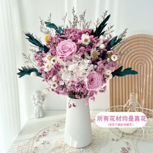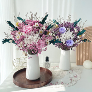 永生玫瑰尤加利叶干花花束家居装 饰真花绣球满天星水晶草客厅摆设
