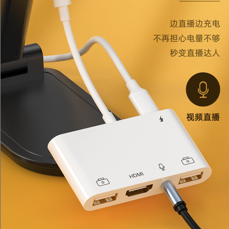多功能五合一扩展坞 直播hdmi同屏适配器usb读卡器usb网卡拓展器