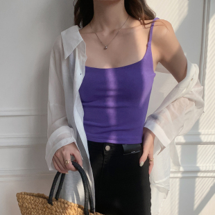 无袖 修身 上衣美背 短款 露背针织吊带背心女外穿带胸垫2026春夏新款