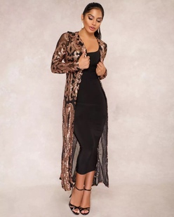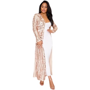 Mesh Women& Long Dress Beach Party Sexy 39;s Jacket Sequin