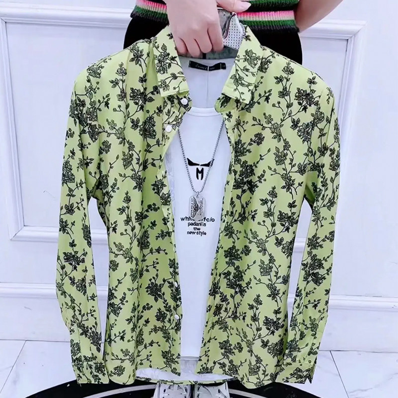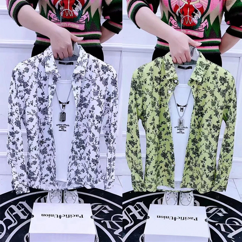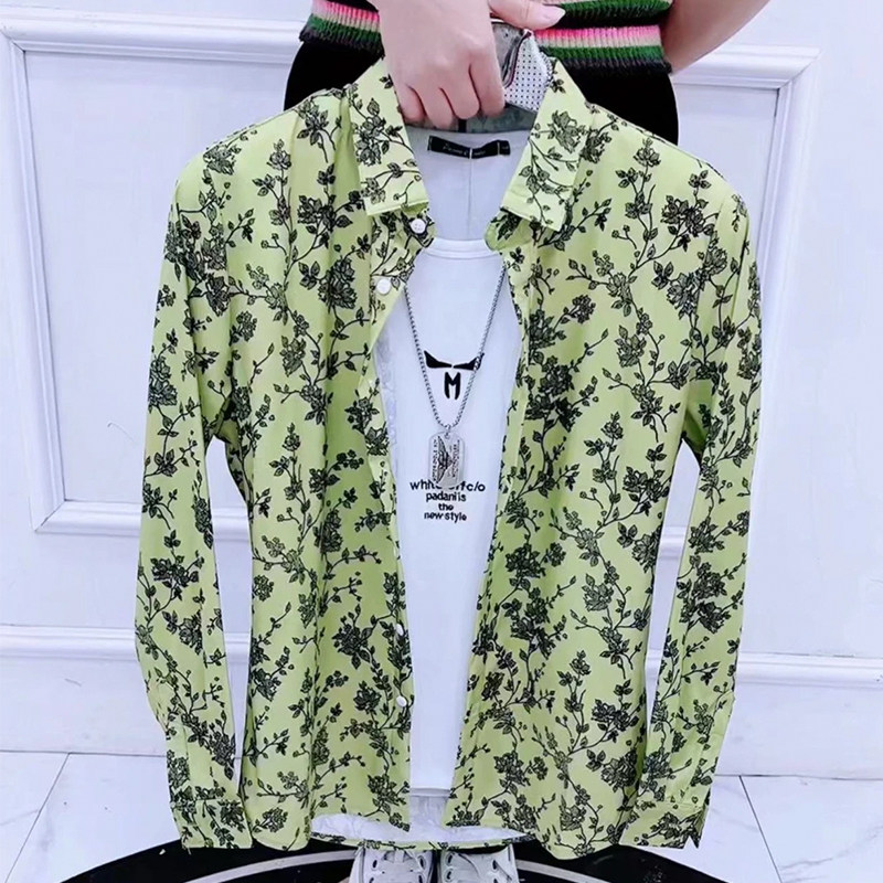 韩版 潮流个性 满花百搭新款 春秋款 寸衫 男长袖 网红衬衣痞帅修身 衬衫