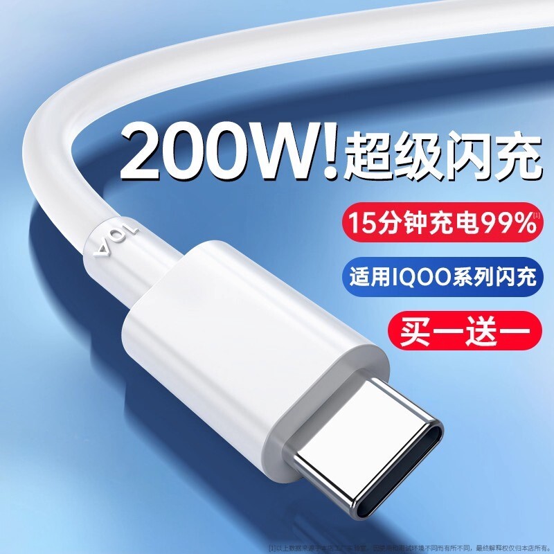 汉言200W数据线typec适用iqoovivo超级10a快充9充电器线11pro双引擎闪充neo5安卓手机6a双tapyc充电线加长2米