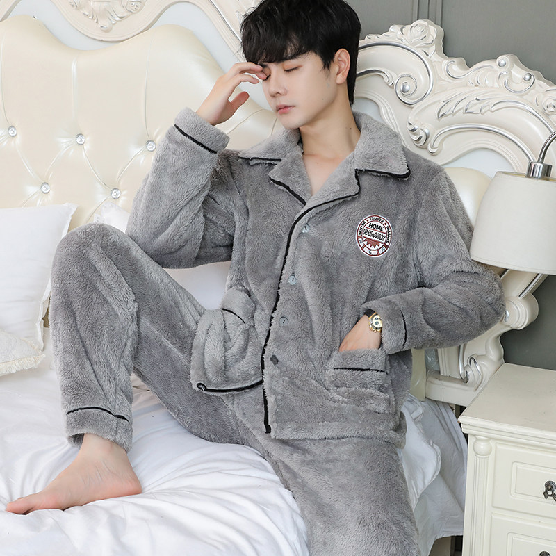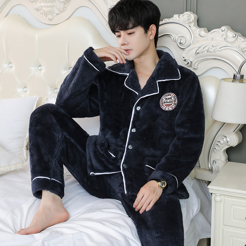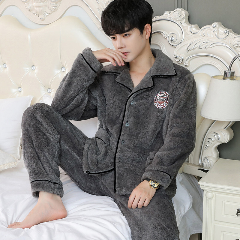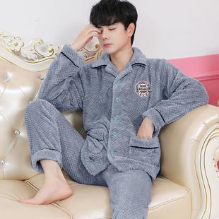 睡衣长袖 家居服加大码 法兰绒套装 男珊瑚绒加绒加厚冬款 秋冬季 男士