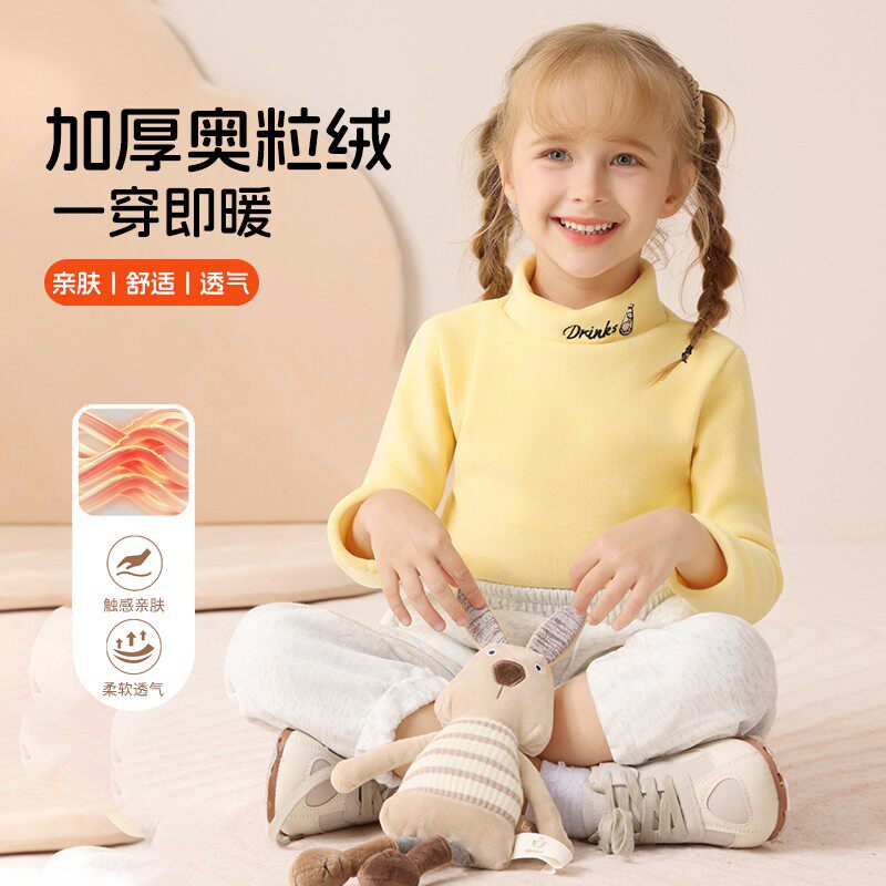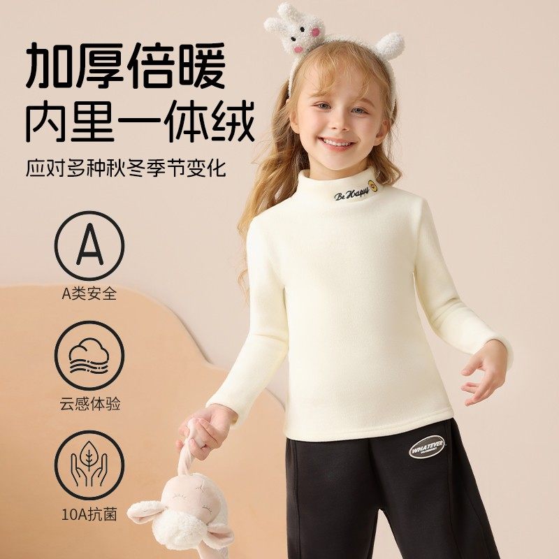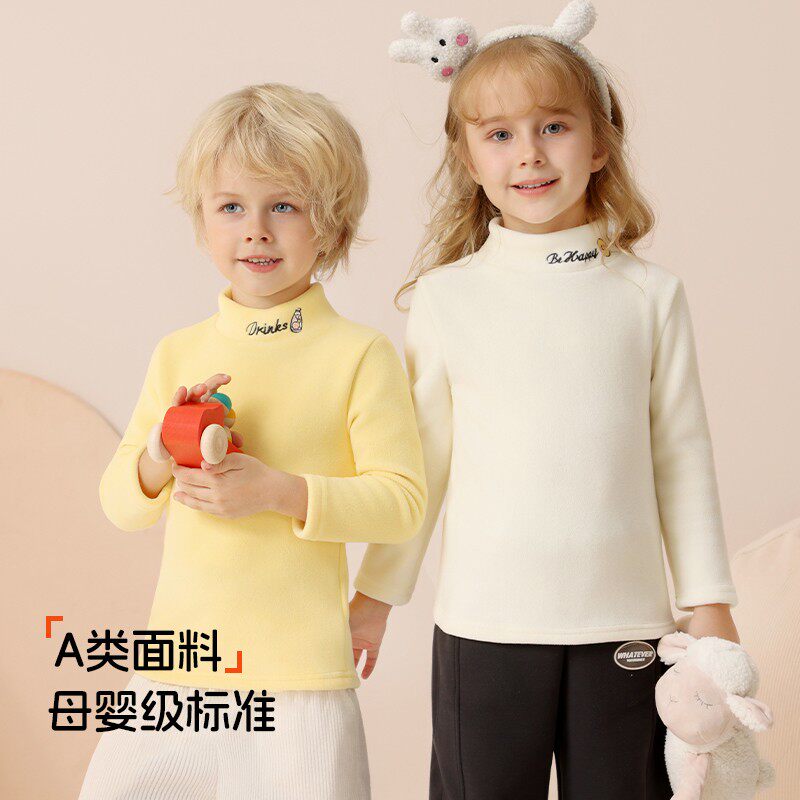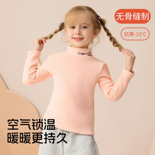 儿童加绒打底衫 秋冬女童一体绒上衣男童宝宝保暖衣卫衣高领打底衣