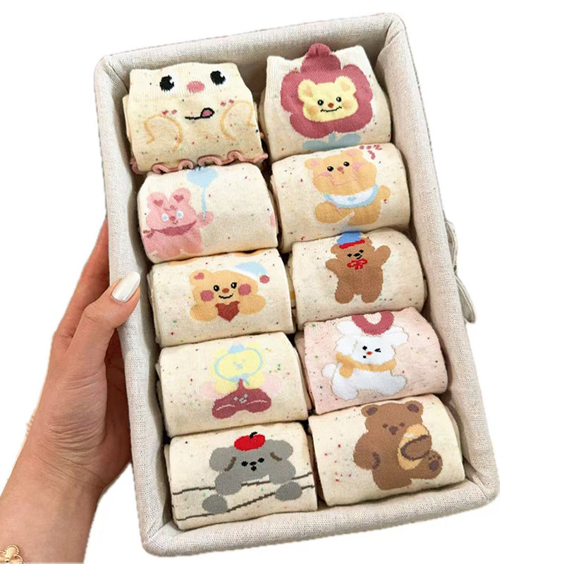 新款 长袜 点子纱可爱袜子女中筒袜春秋棉袜白色卡通学生ins潮夏季