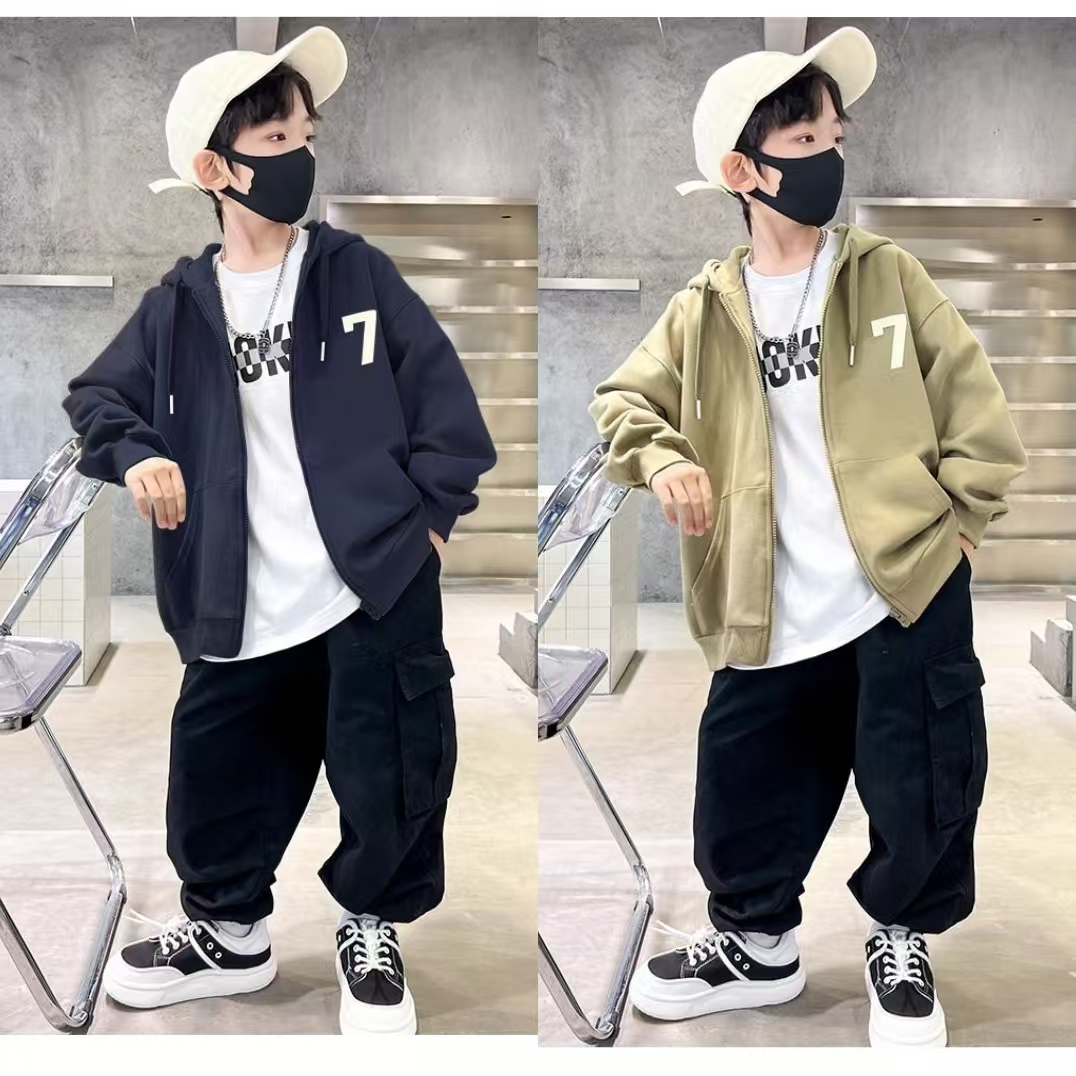 儿童洋气长袖 中大童休闲连帽开衫 卫衣 外套上衣2025新款 男童春秋款