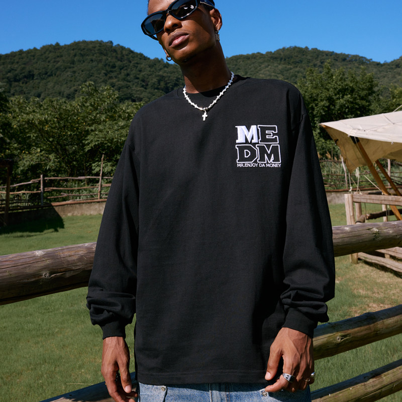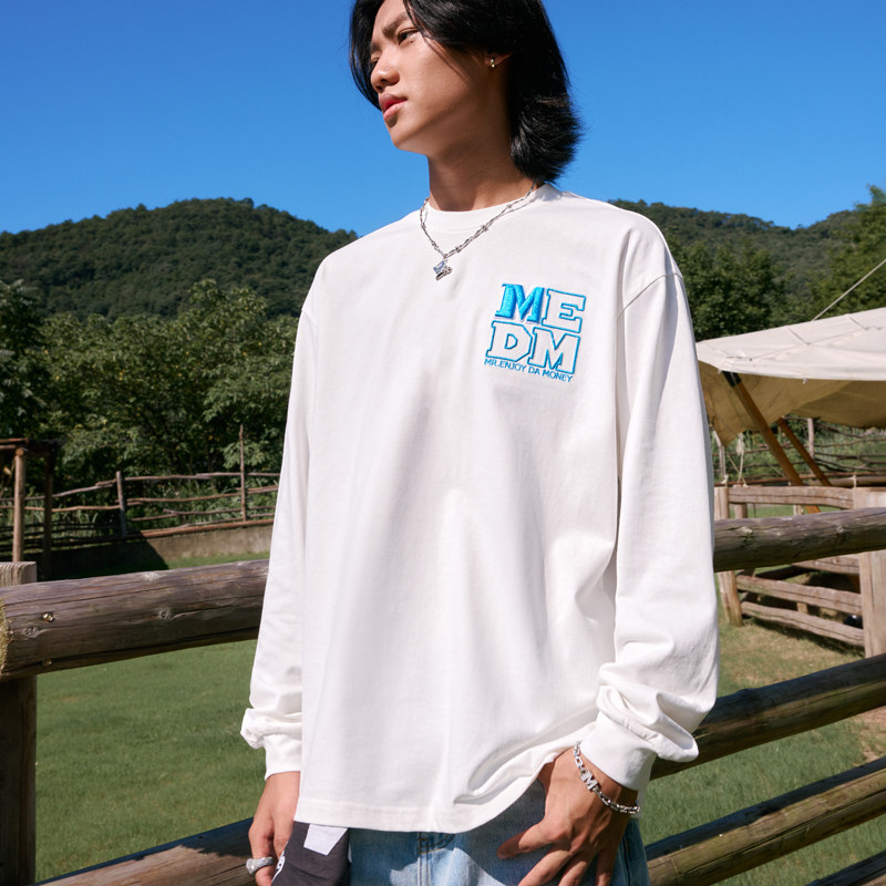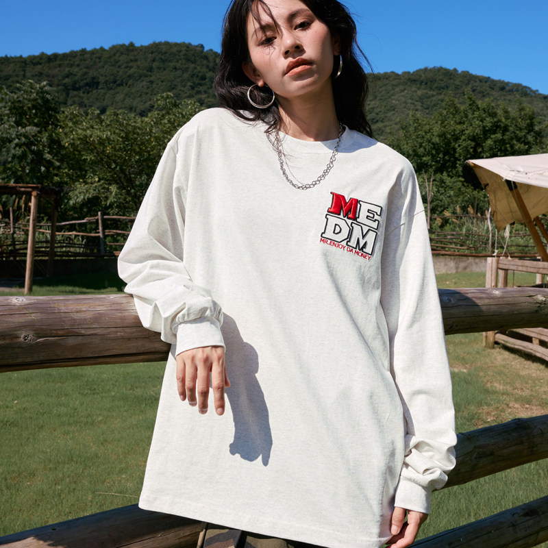 MEDM徽章刺绣字母基础长袖 百搭情侣潮流tee T恤春秋圆领宽松春秋季