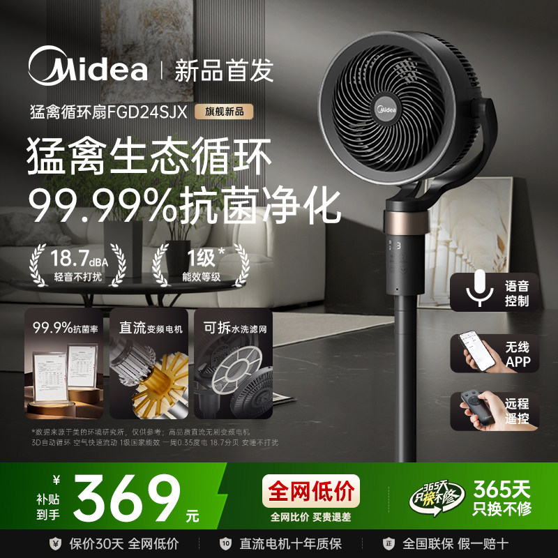 3D落地扇 空气循环扇家用电风扇直流静音遥控语音台式 美 2025新款