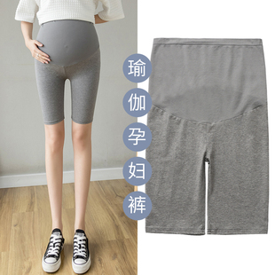 显瘦弹力紧身瑜伽短裤 无痕托腹五分裤 春夏外穿薄款 孕妇安全打底裤