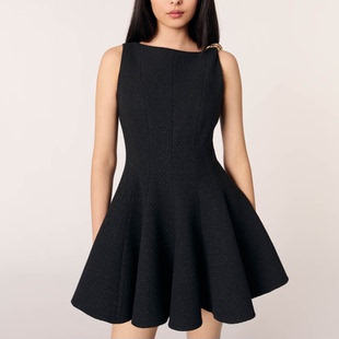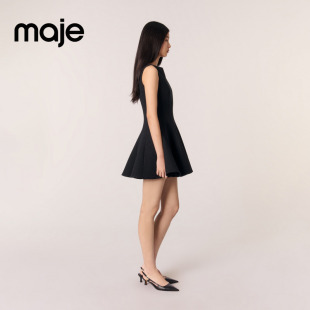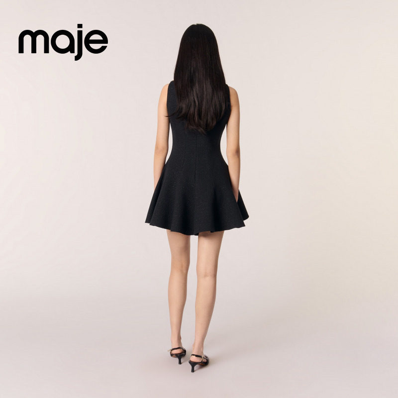 末7折Maje2025秋冬女装 修身 法式 短款 花呢连衣裙 气质圆领无袖 季