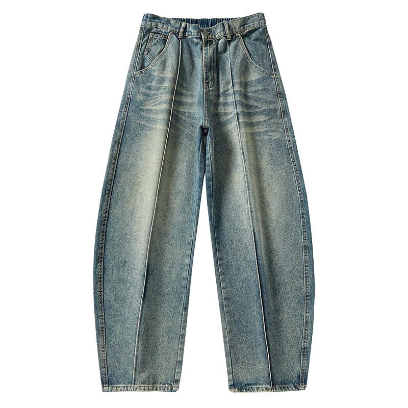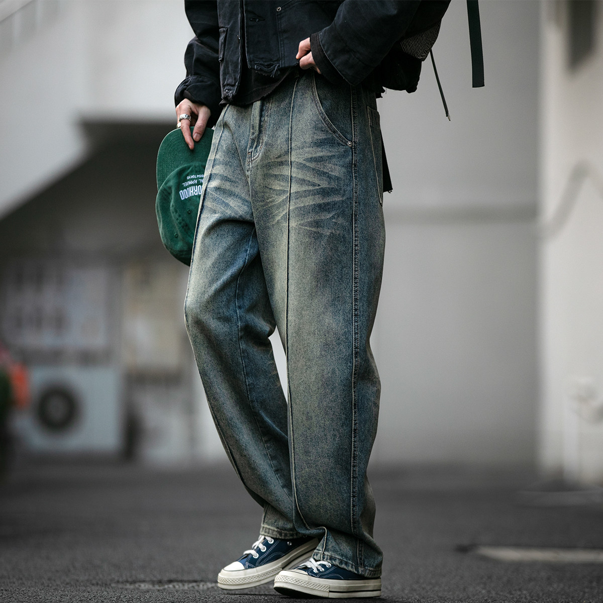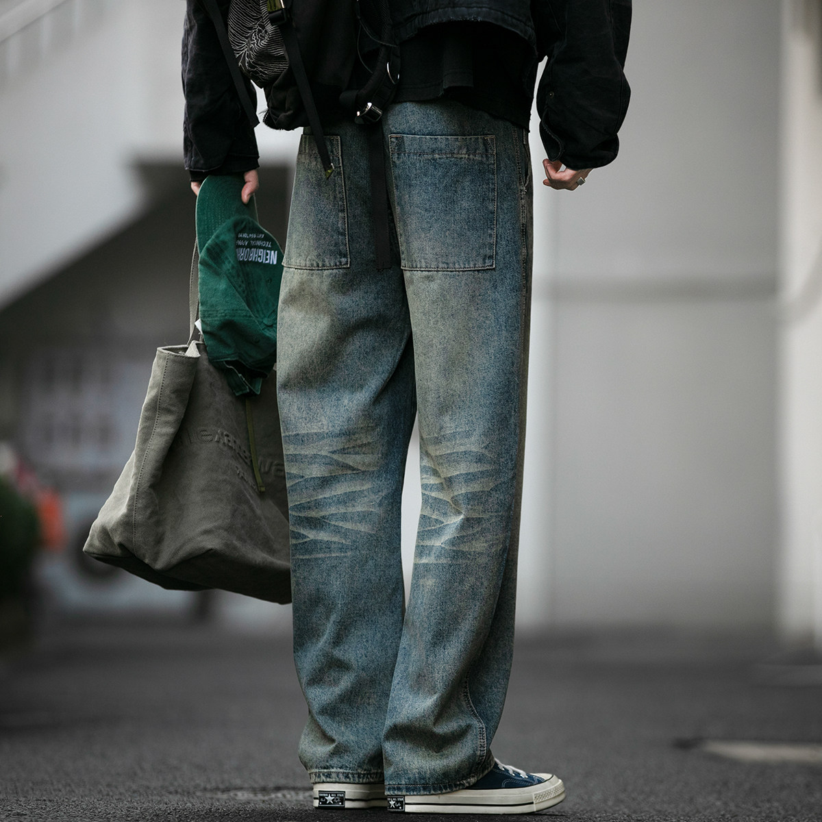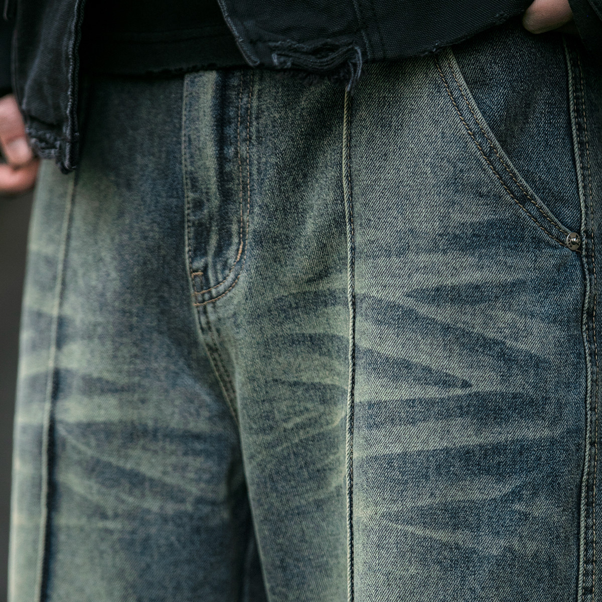 男秋冬cleanfit百搭拖地裤 QUALCOMM美式 高街竹节纹微喇直筒牛仔裤