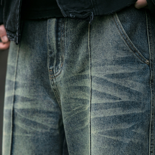冬做旧质感热感保暖直筒原牛色复古牛仔裤 太平鸟男装 牛仔裤