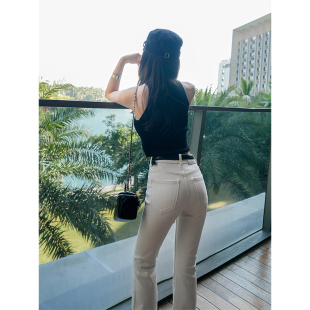 女米白色高腰马蹄喇叭长裤 显瘦微喇牛仔裤 2026春夏 修身 糯米牛仔