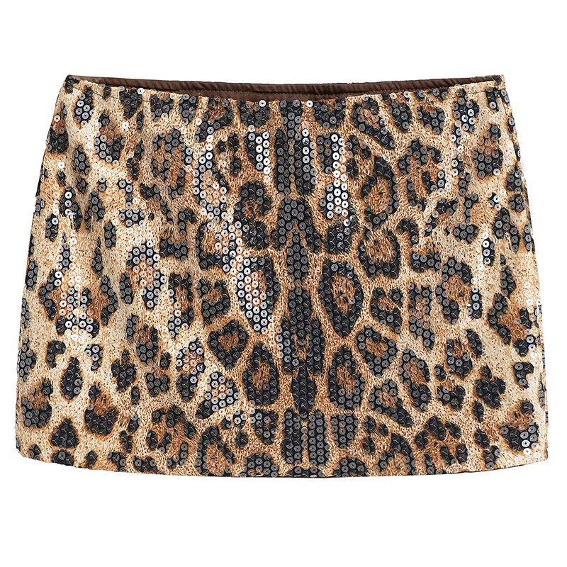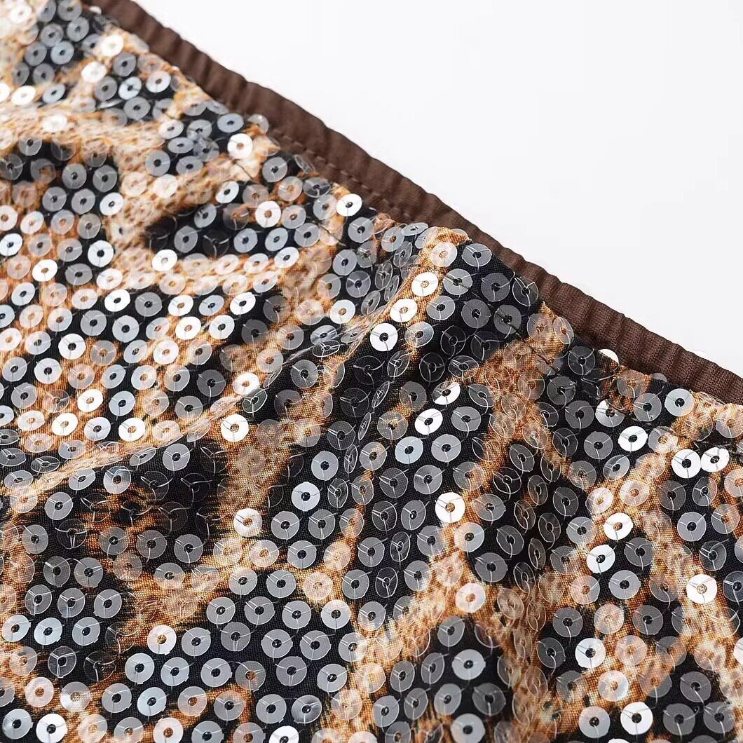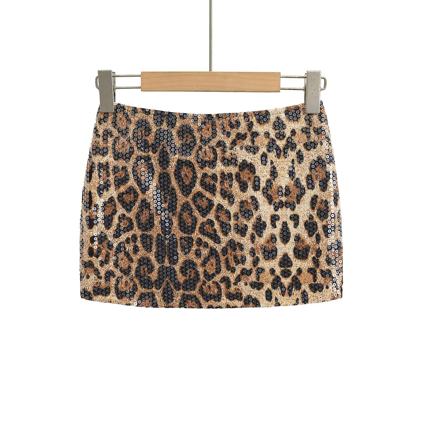 辣妹豹纹亮片半身裙女ins潮纯欲低腰微弹裙包臀短裙 MICN美式