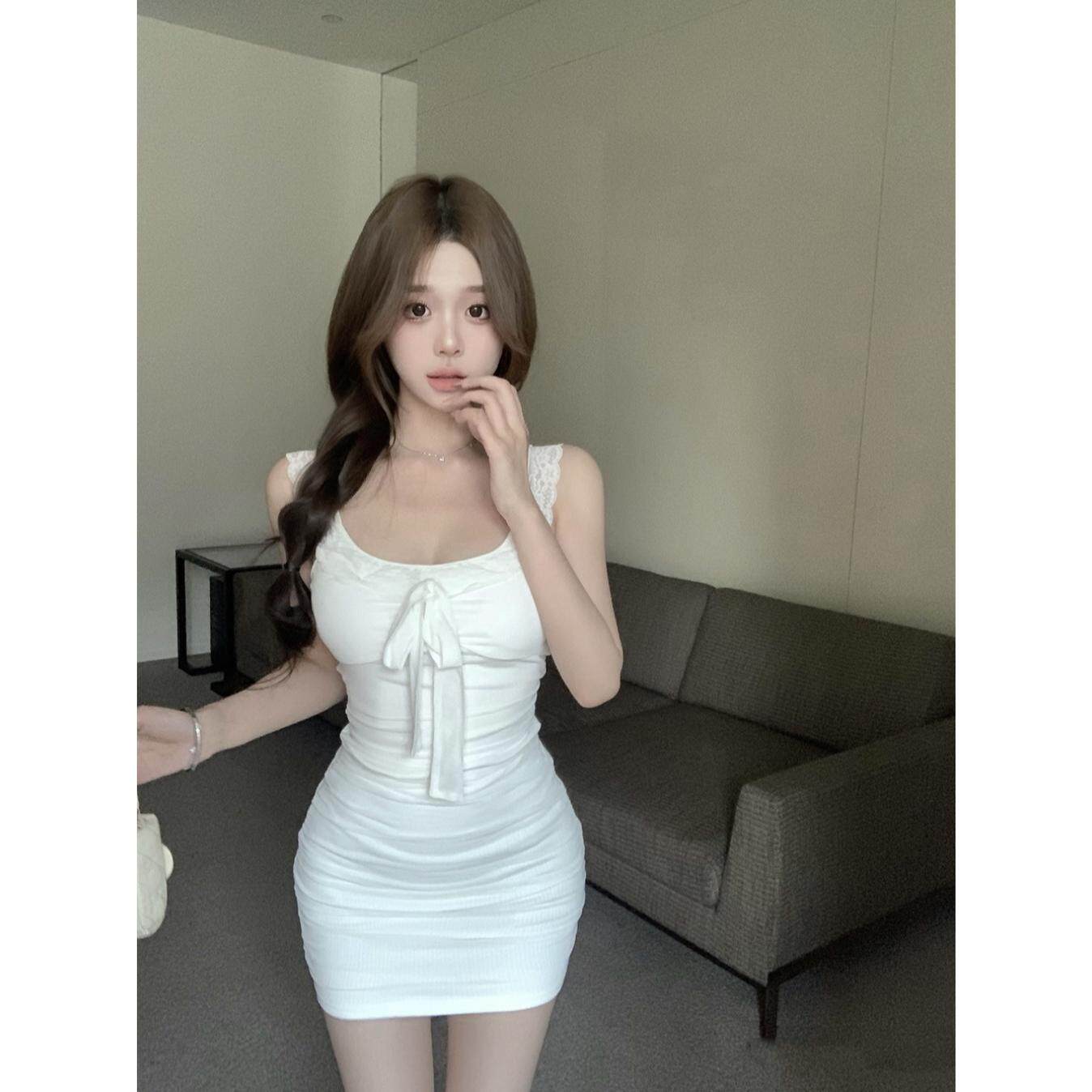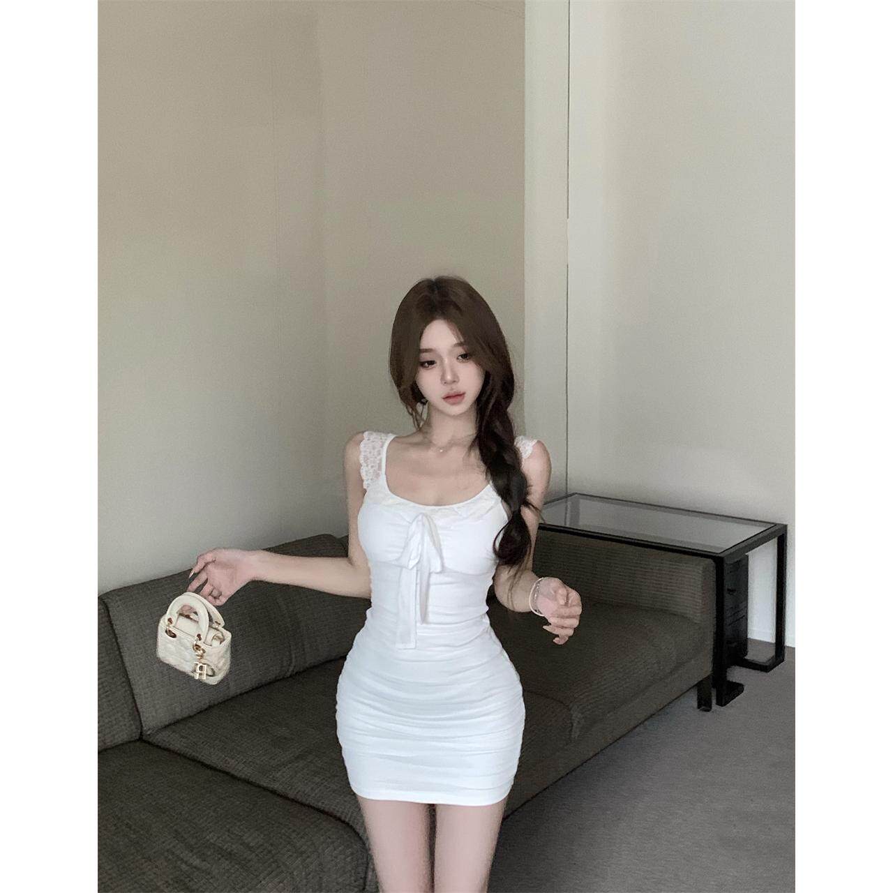 带胸垫性感修身 包臀吊带连衣裙性感纯欲蕾丝边收腰显瘦紧身短裙