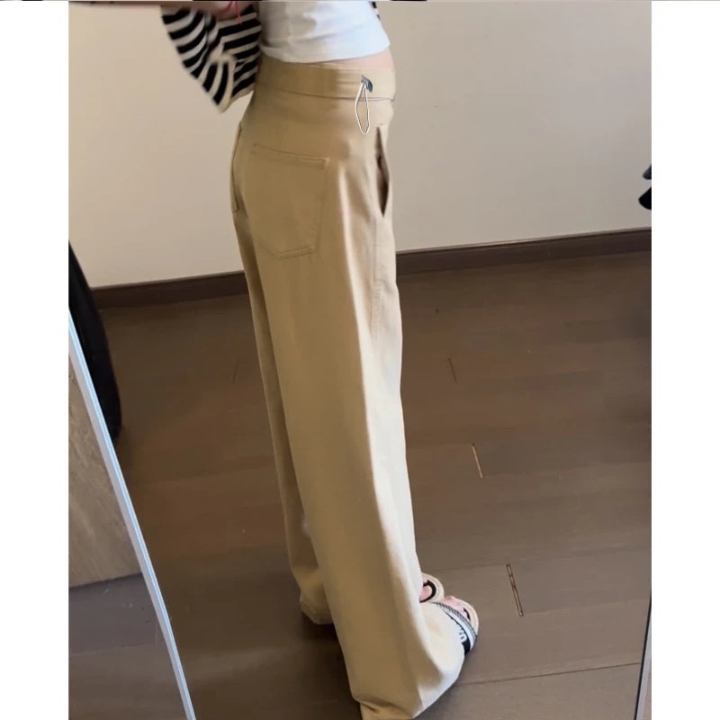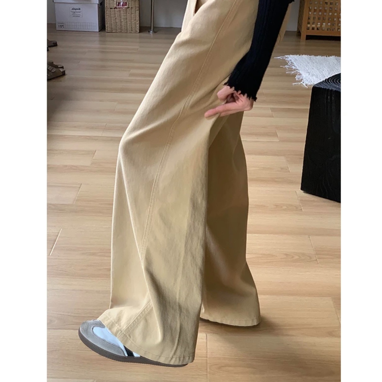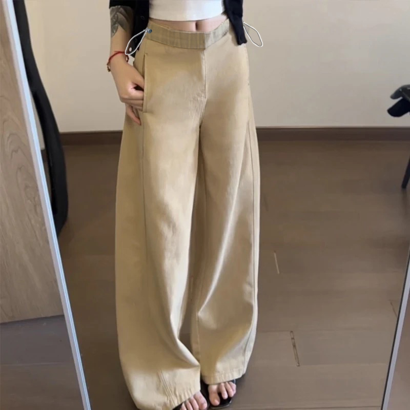 早春宽松拖地长裤 慵懒休闲裤 夏春秋侧抽绳阔腿裤 孕妇卡其色牛仔裤