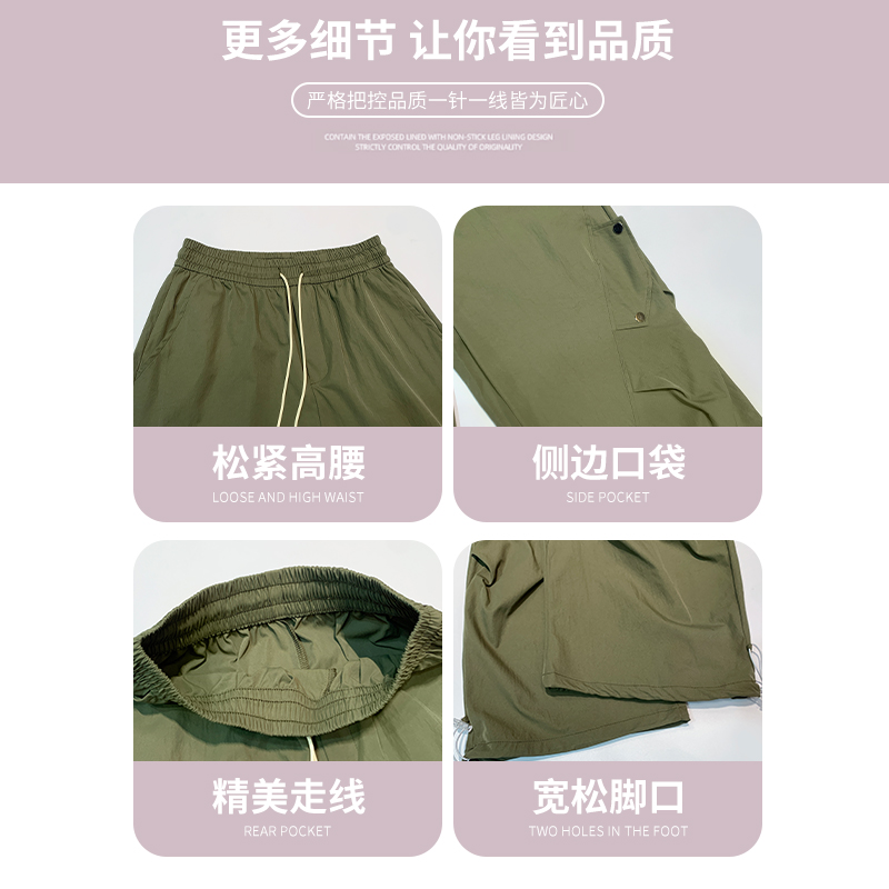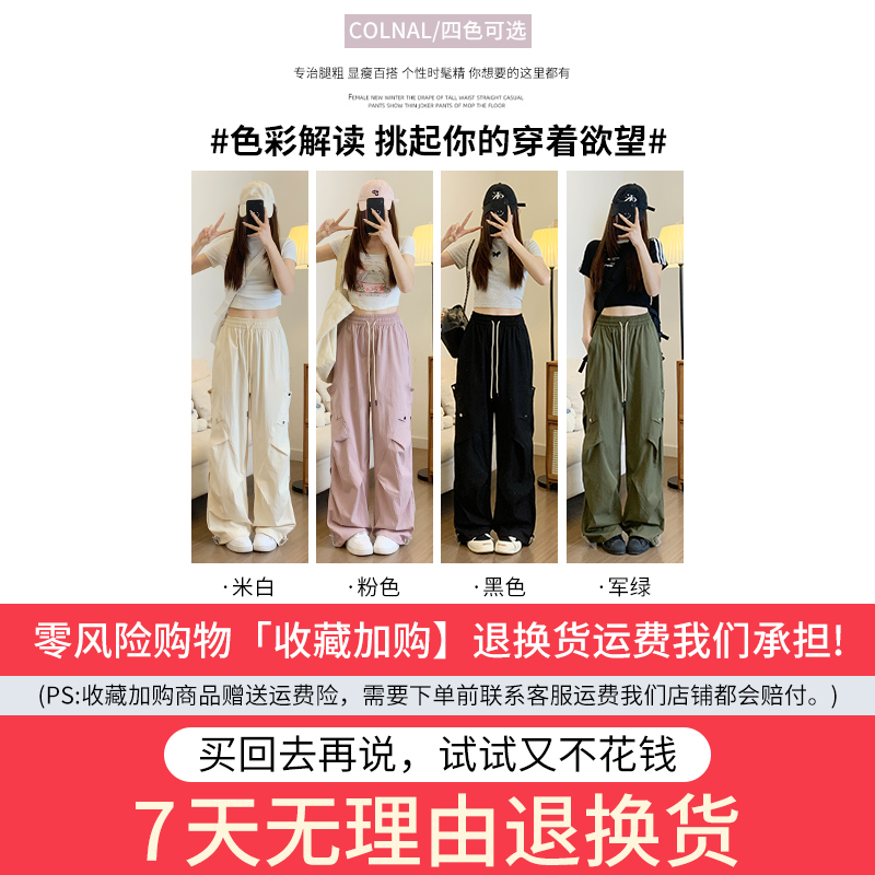 高腰直筒垂感休闲户外运动降落伞阔腿裤 美式 女春夏2025新款 裤 工装