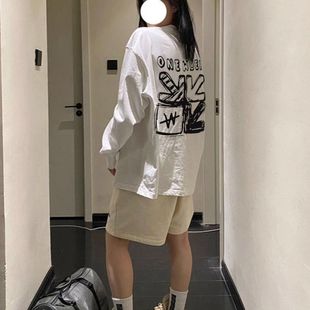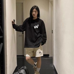 纯色宽松大码 新款 美式 t恤女春秋季 T上衣 潮牌字母260g重磅纯棉长袖