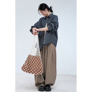 双色窄腰垂感极简休闲西裤 鹿与飞鸟 松枝拿铁 Cabin 6534 Sea