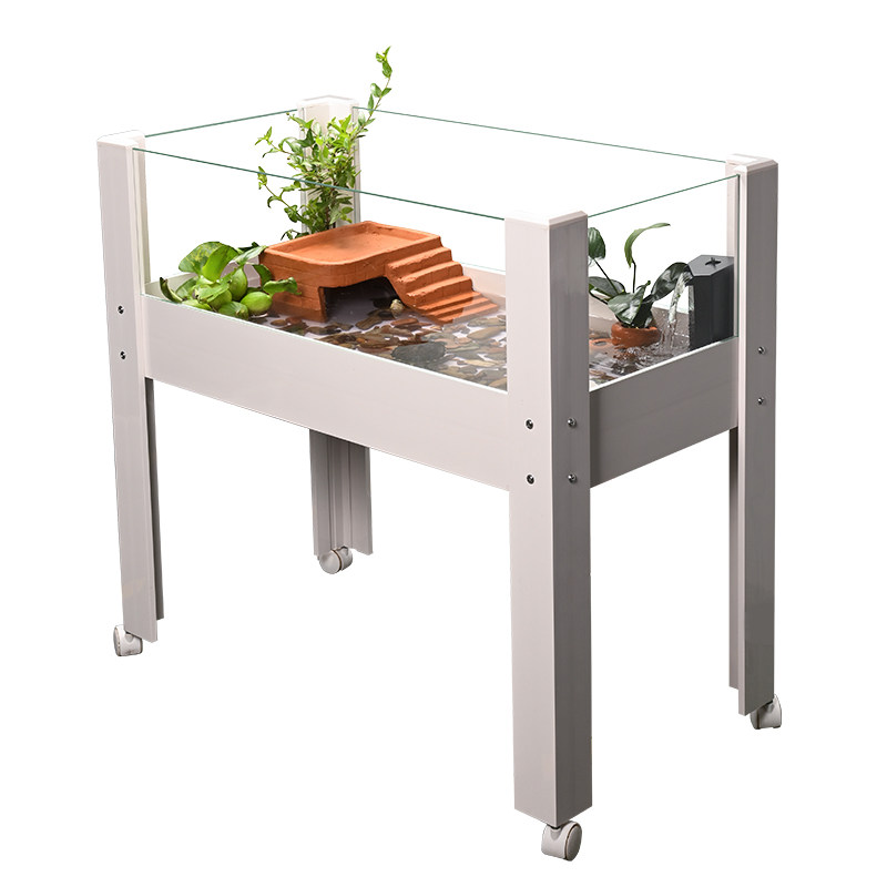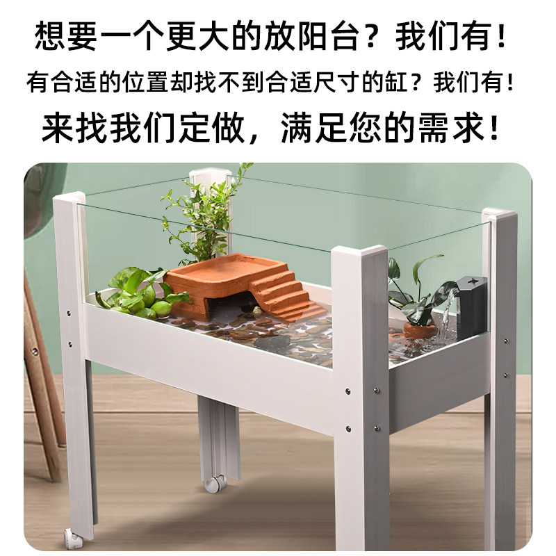 乌龟饲养缸带晒台大型生态造景箱养乌龟水陆缸玻璃带排水家用