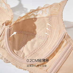 奥丽侬大胸显小全罩杯薄款 聚拢收副乳显瘦内衣女 蕾丝性感胸罩大码