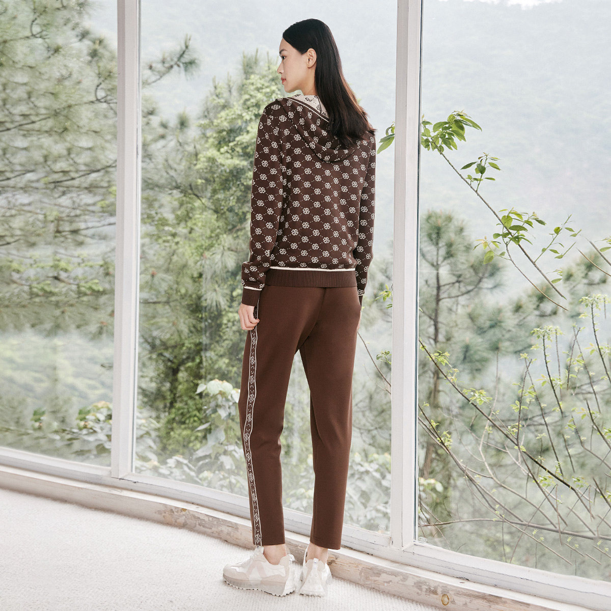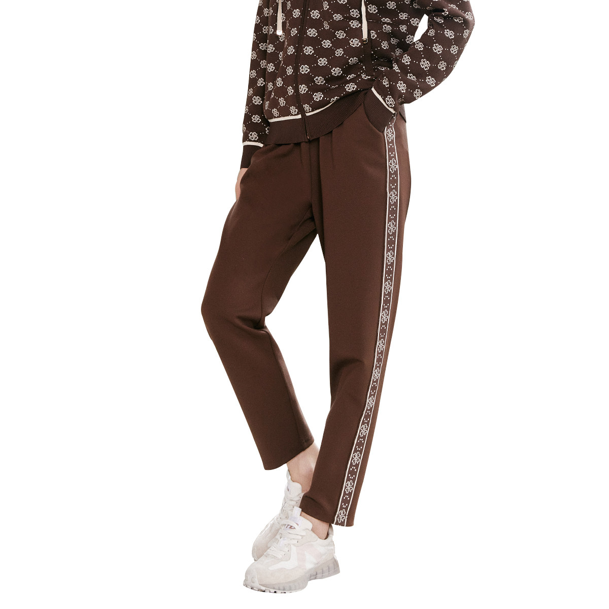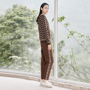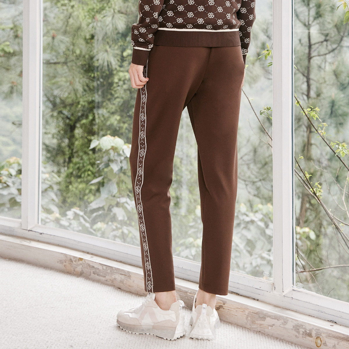 1D32K9630 简约咖啡色花边舒适运动休闲裤 歌蒂诗秋季 专柜新款