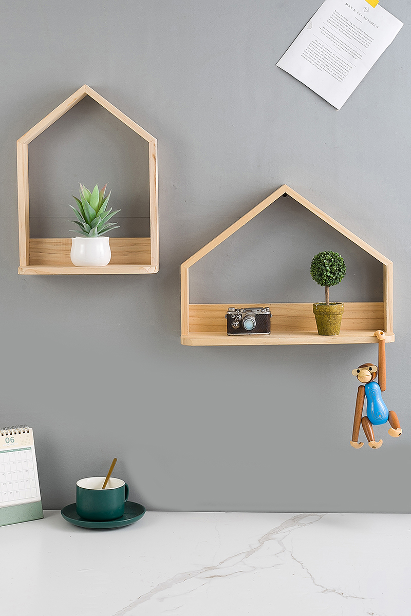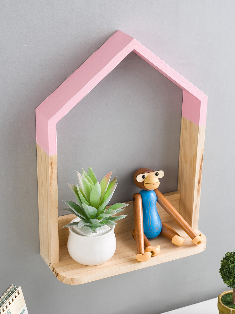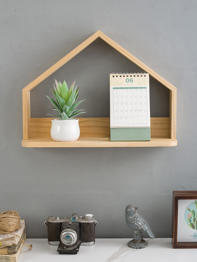 创意北欧实木墙上置物架免打孔墙壁客厅电视背景墙柜面原木装 饰架