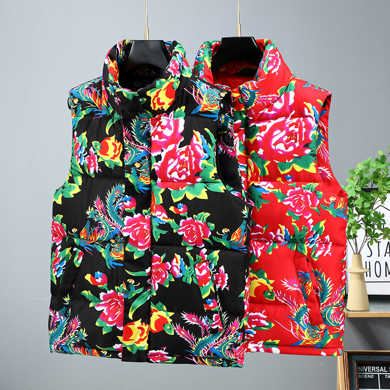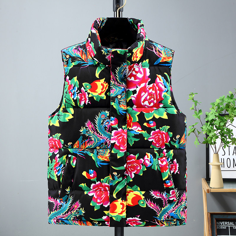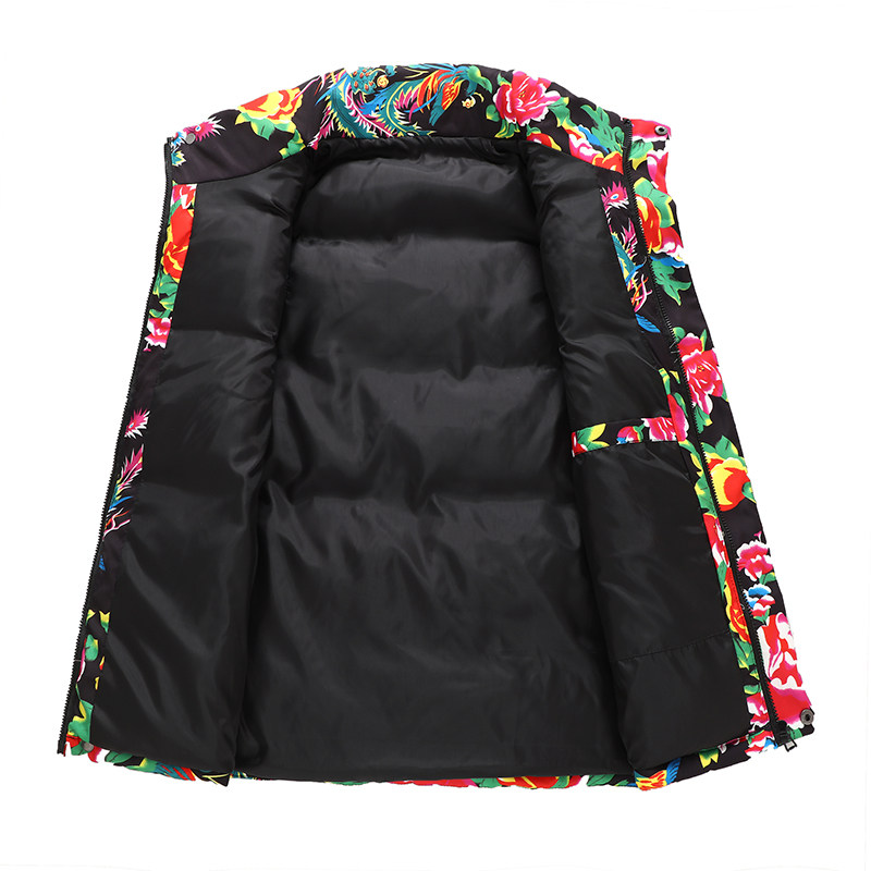 坎肩 加厚保暖背心棉服外套大码 东北大花棉袄羽绒棉马甲男女款 冬季